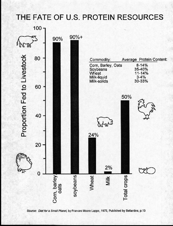 (Source: Roller, W.L. et al, “Energy Costs of Intensive Livestock Production,” American Society of Agricultural Engineers, June 1975, St. Joseph, Michigan, paper no. 75-4042, table 7, page 14, cited in Singer and Mason, Animal Factories, note 54. Also in John Robbins, Diet For A New America, page 376.)