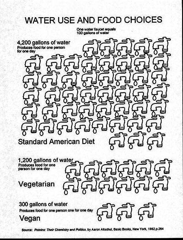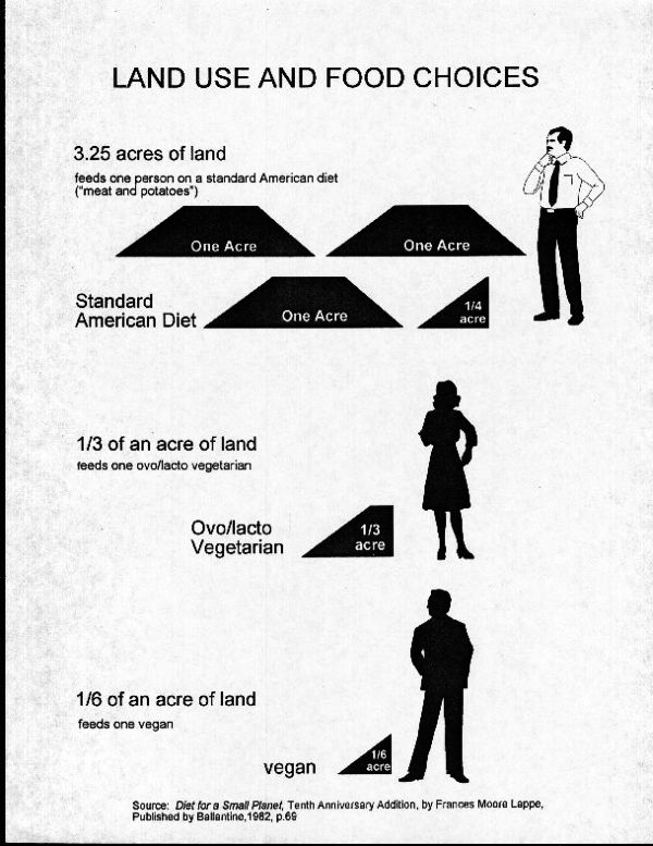 (Source: David and Marcia Pimental, Food, Energy, and Society, London: Edward Arnold, 1979, page 59; David Pimental, et al, “Energy and Land Constraints in Food Protein Production,” Science, 21, November 1975.)