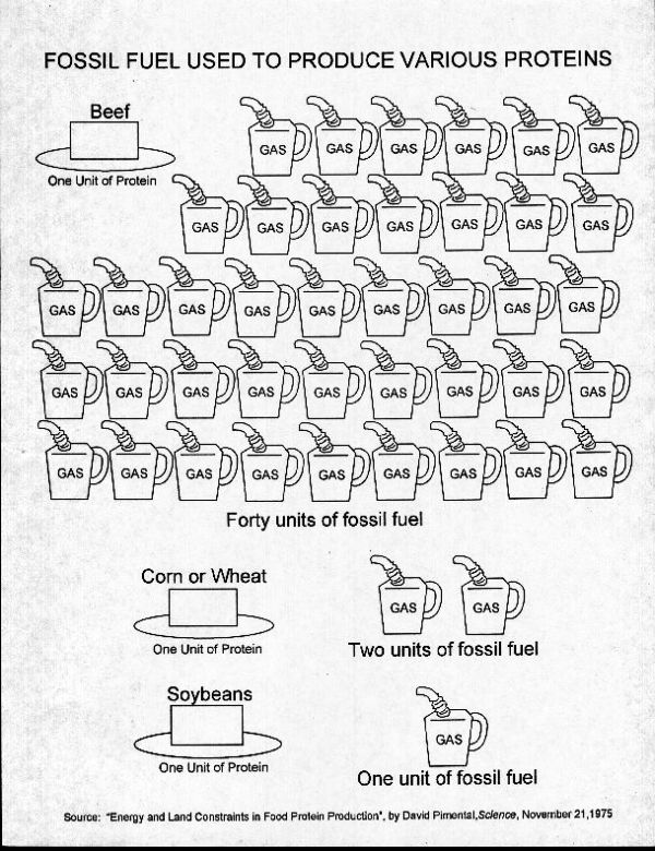 And if you got the same amount of protein from soy beans, we are looking at only 2.5% of the fossil fuel energy—and greenhouse gases—relative to what is associated with beef production.